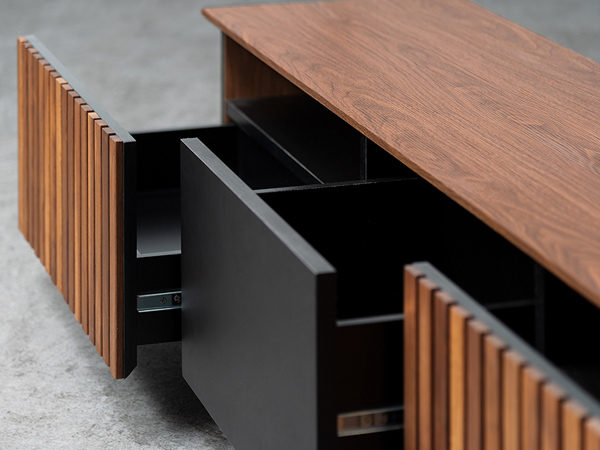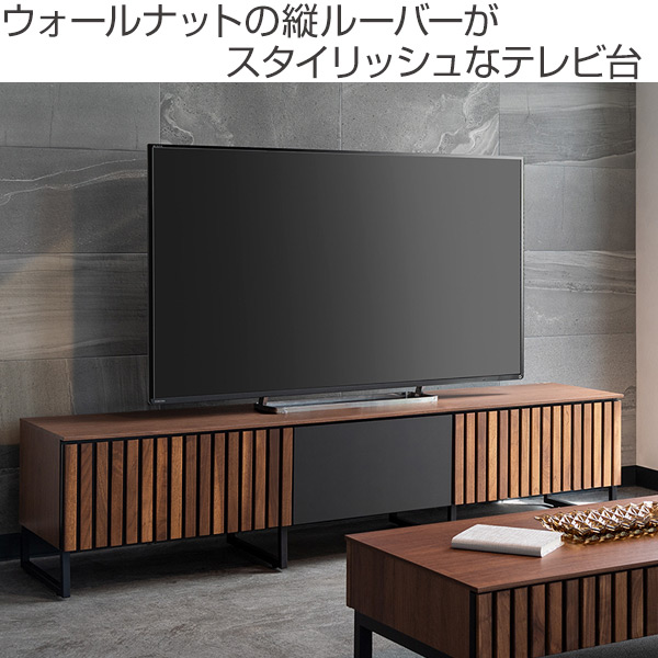 ウォールナットの縦ルーバーがスタイリッシュなテレビ台