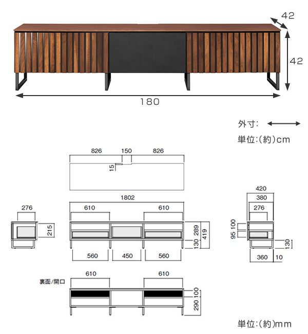 | サイズ | 約 幅180×奥行42×高さ42(cm) |