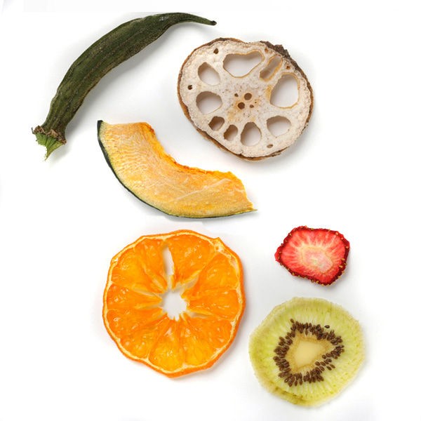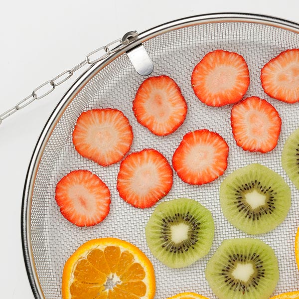 フルーツや野菜など、切って並べて干すだけで、手軽に自家製ドライ食品を作ることができます。