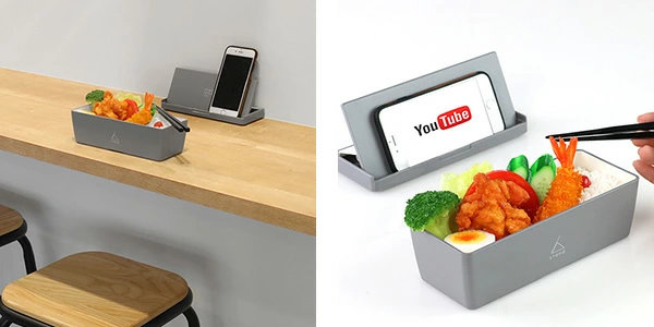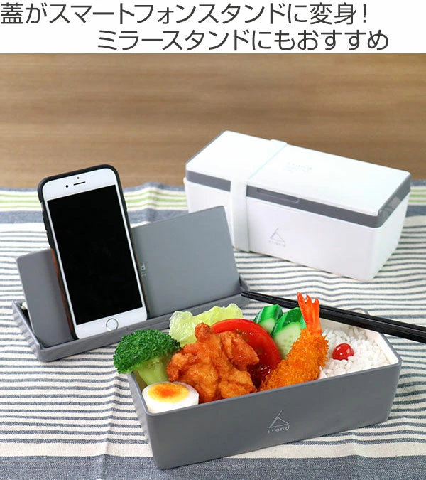 ミラースタンドにもなるから、食後の身支度にも便利です。使った後はまたくるっと回してお弁当箱と一緒に片付けるだけです。