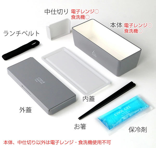 - 本体:PET、ABS 蓋:ABS 中蓋:PE 箸:AS 仕切り:PP