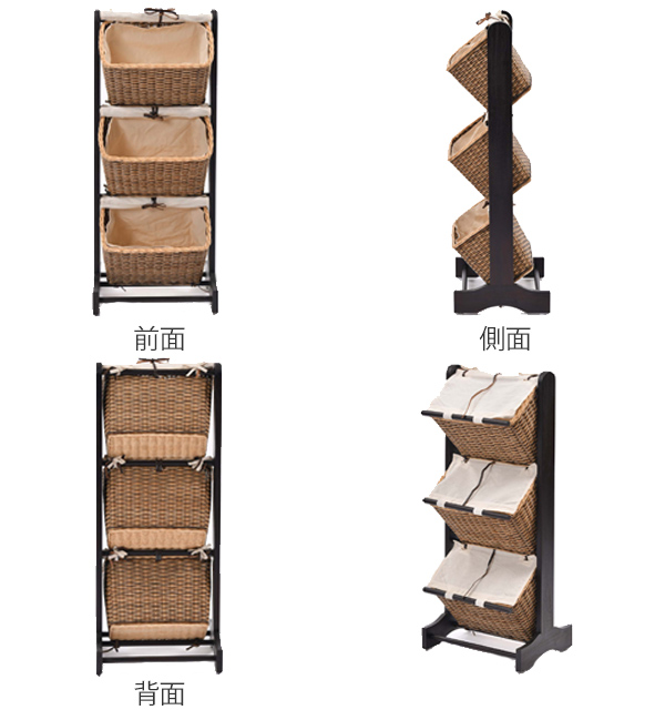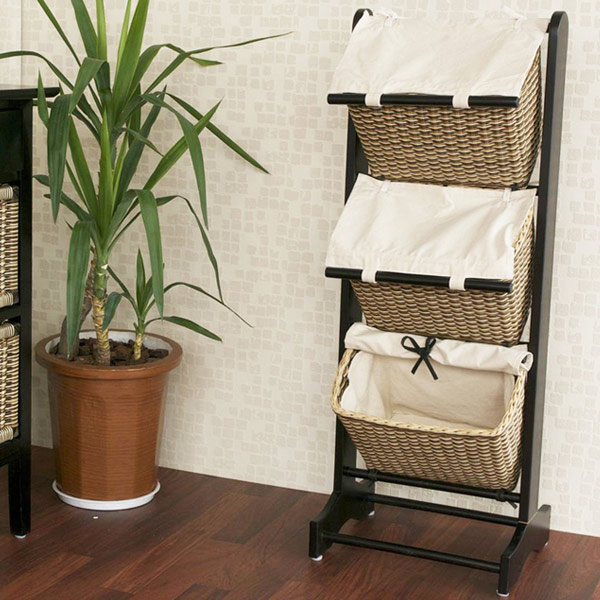 通気性がいいラタン製バスケットのため脱衣所、寝室、クローゼット、キッチンなどさまざまなシーンで活躍するラックです。アジアンテイストやナチュラルテイストにもあわせてお使いいただけます。