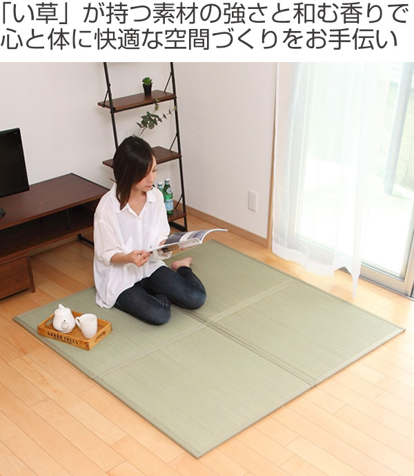 表面には「い草」100%を使用しており、通気性もよく、吸放湿性機能もあるので、1年通して快適にお過ごしいただけます。