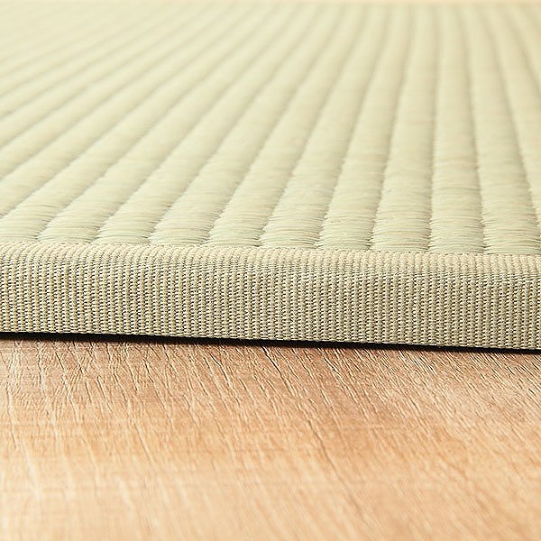 | 材質 | 表面:い草100% 床(とこ):発泡ポリエチレン、クラフト紙、PPフィルム(ビニール) 裏面:PPフィルム(ビニール) 縁布:ポリエステル すべり止め:アクリル樹脂 |