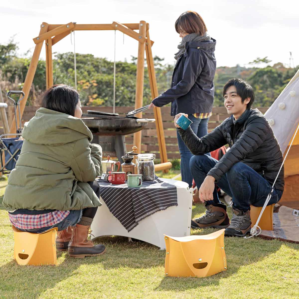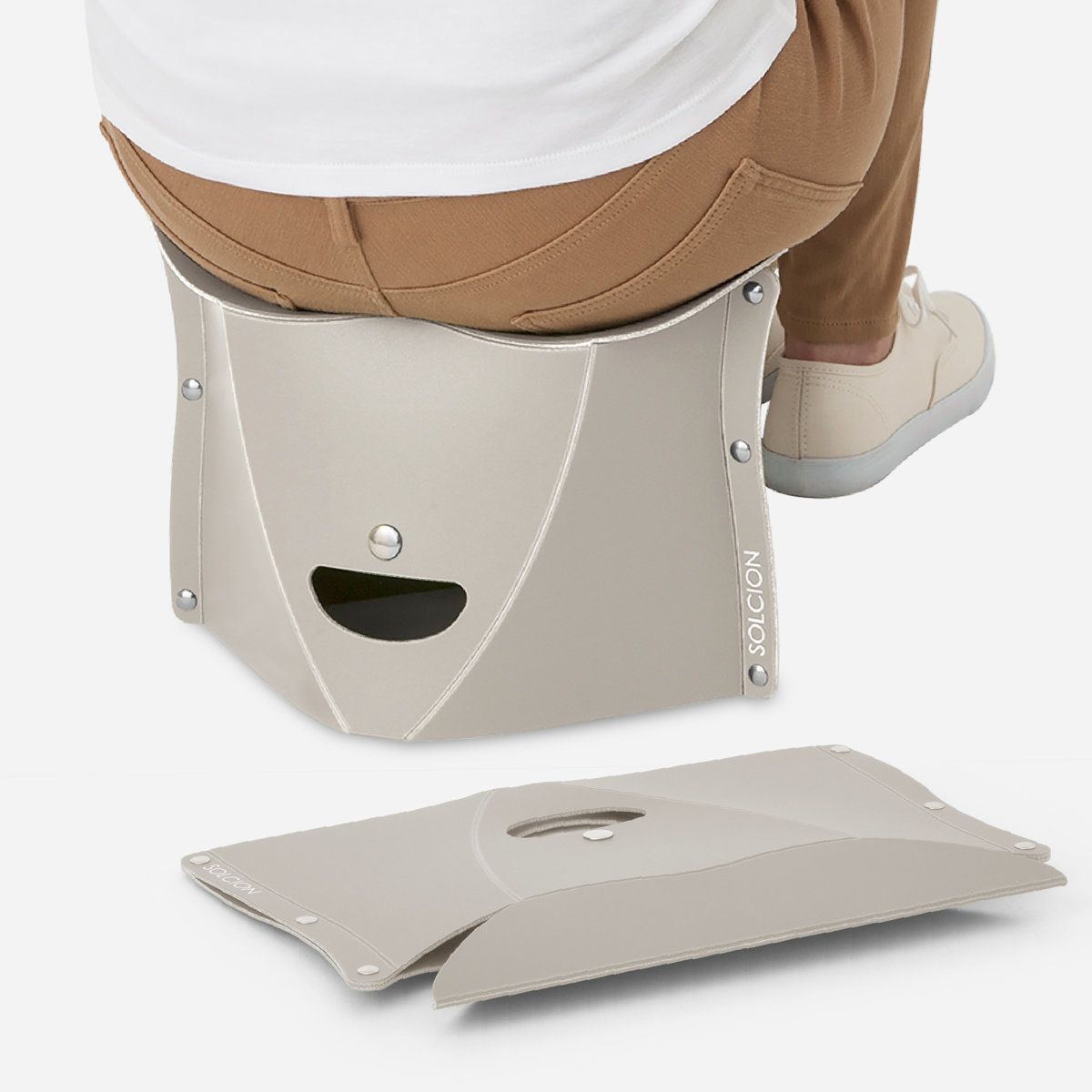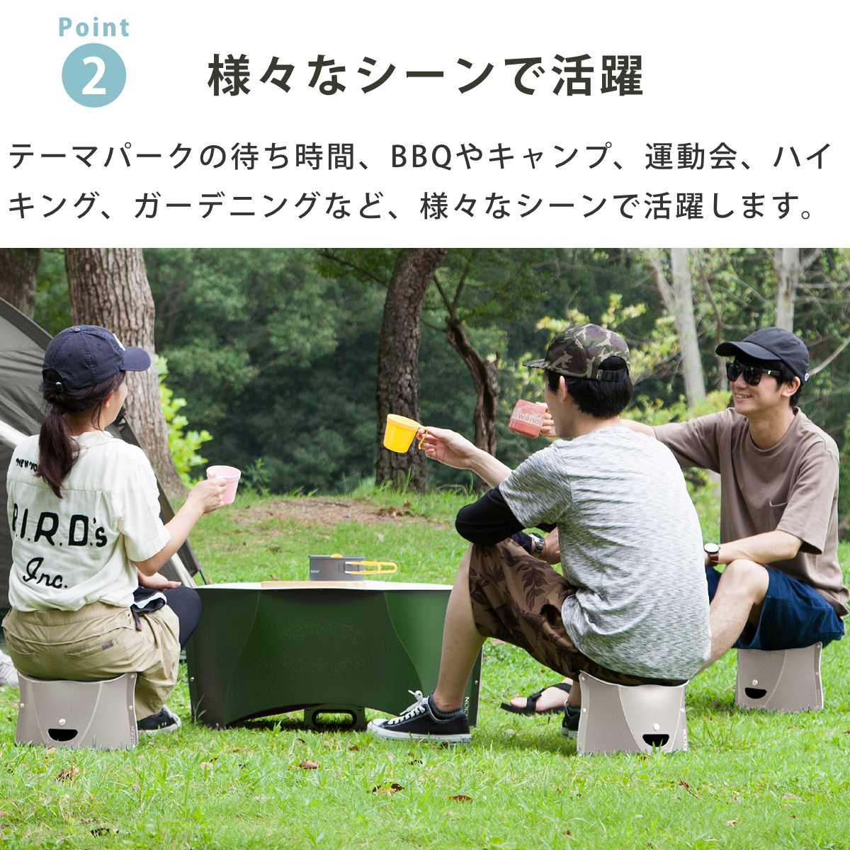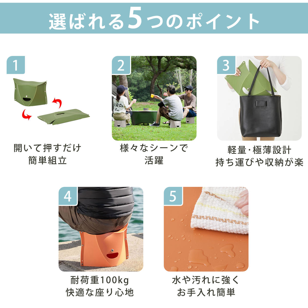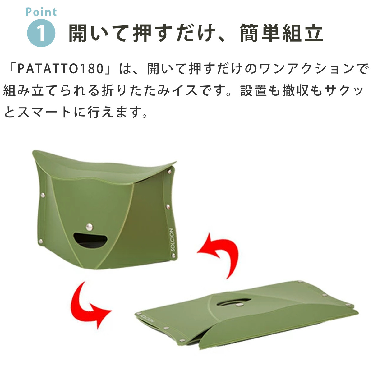 開いて押すだけ簡単組立!カバンに入る軽量折りたたみイス