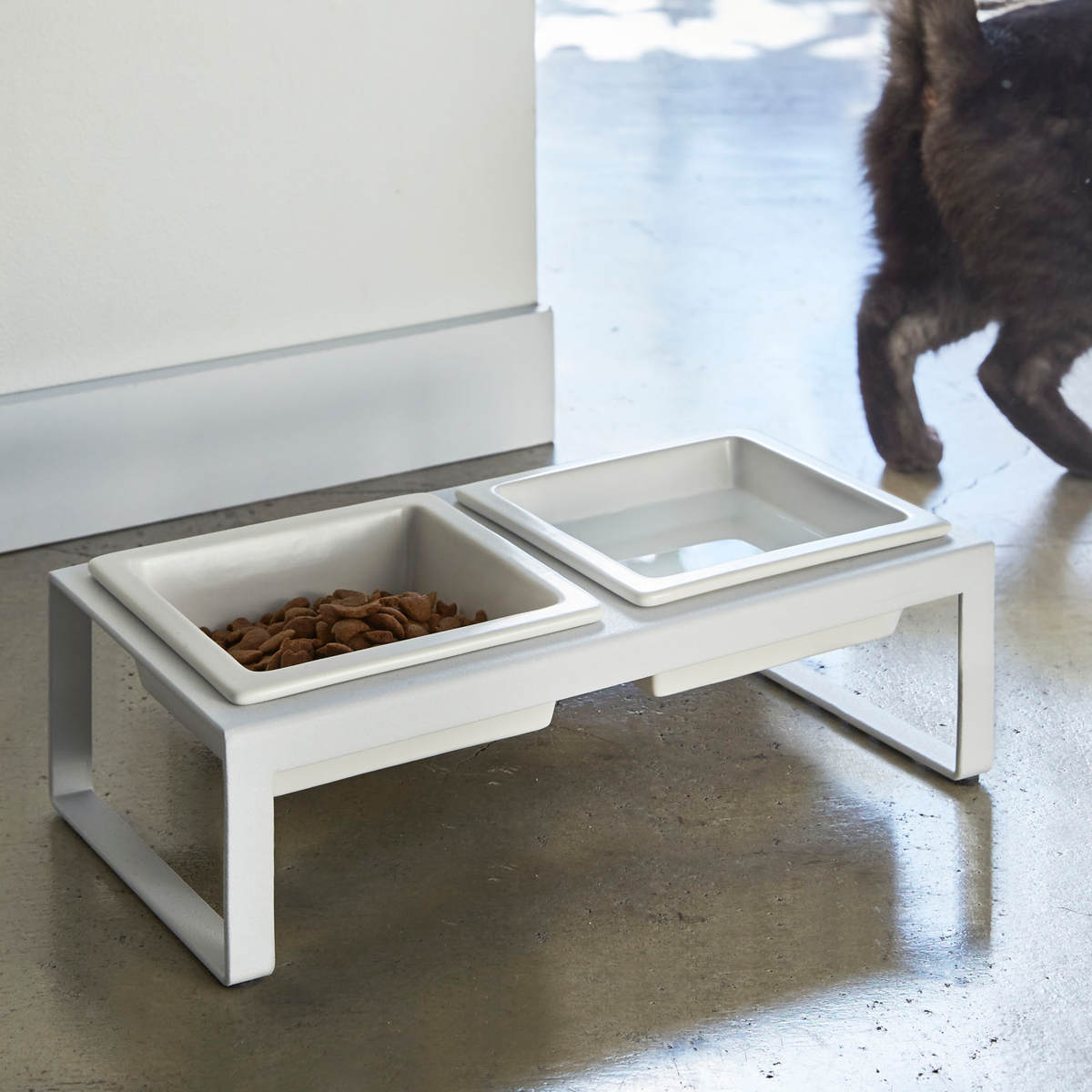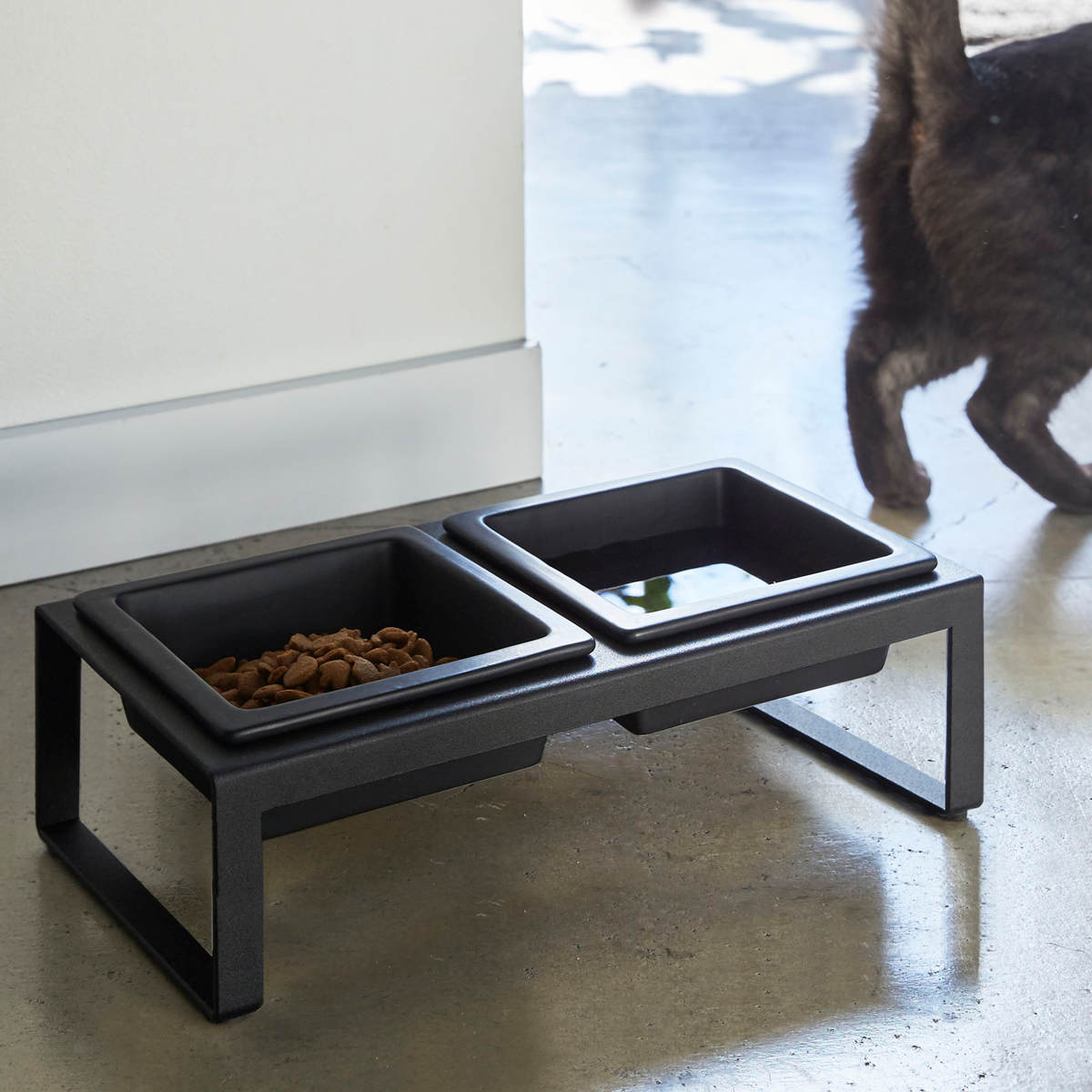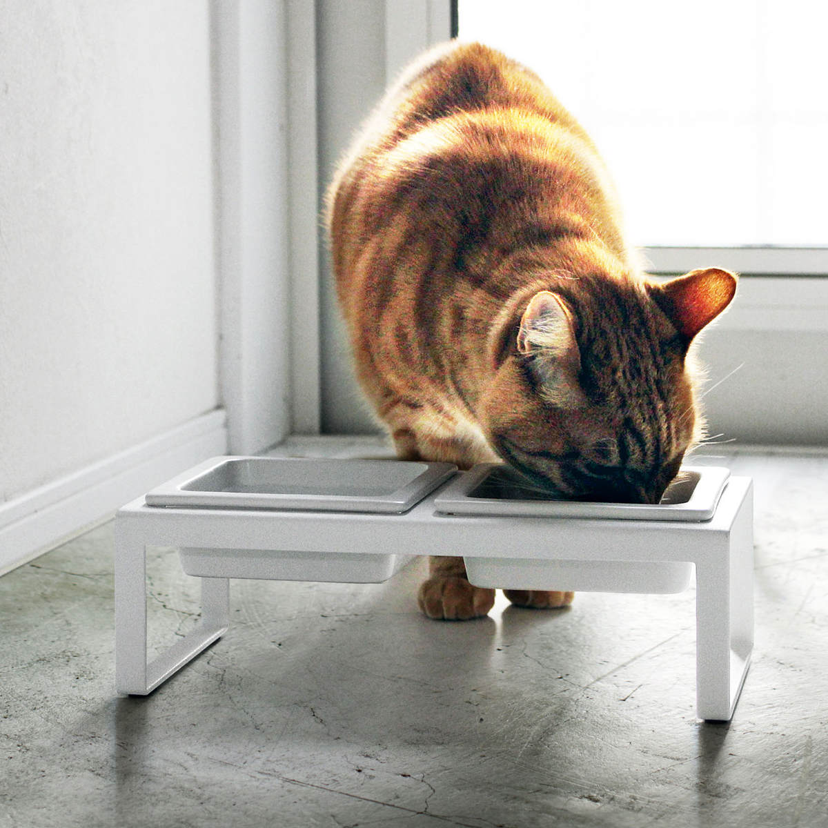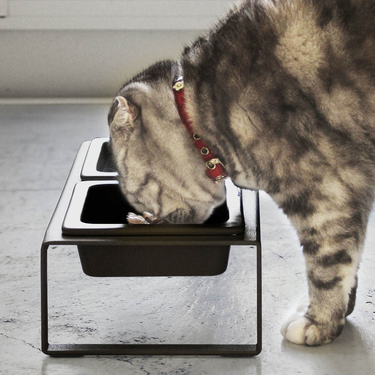キッチンやリビングのインテリアの邪魔をしないシンプルでスタイリッシュなデザインです。ボウルが2つ付いているので、お水とフード、2種類のフードを入れるなど自由に組み合わせて使えます。