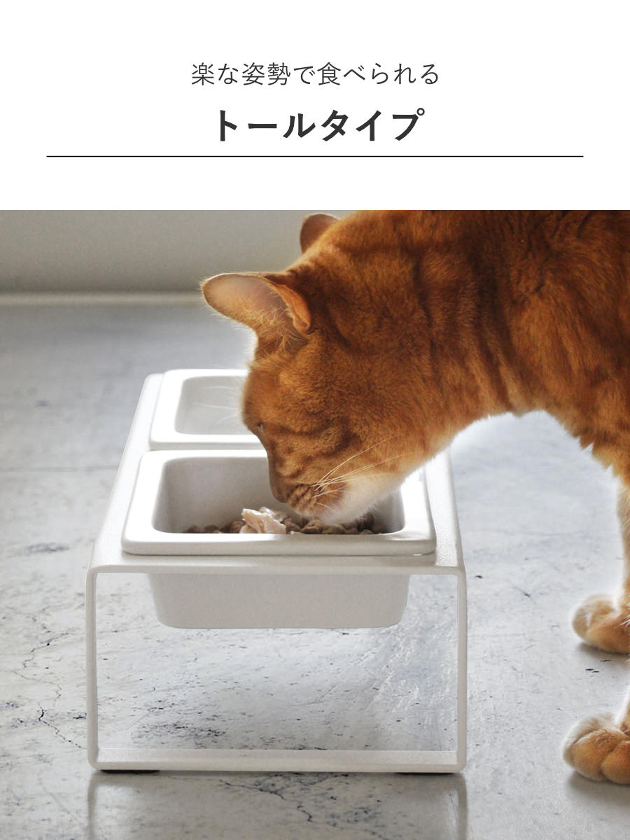 床に食器を置いた時に比べ、首や腰を曲げずに食べる事ができるため、 食事中の体の負担を軽減することができます。高さがあるトールタイプなので、シニアや病中・病後のペットに特におすすめです。