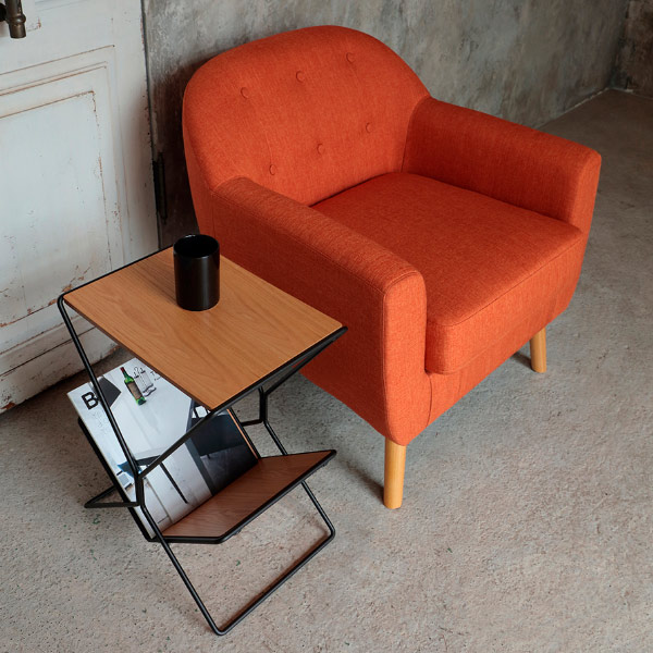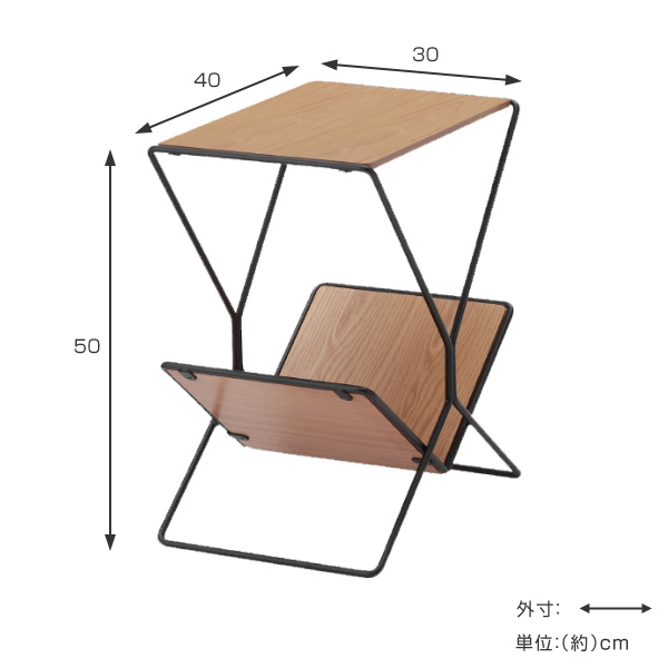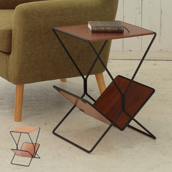 シンプルながら、インテリアのアクセントになるデザインです。ソファの横に置いても使いやすく、天板下のラックには、お好みの雑誌などを見せながら収納することができます。