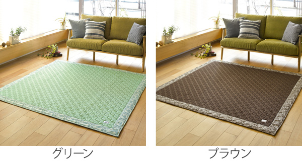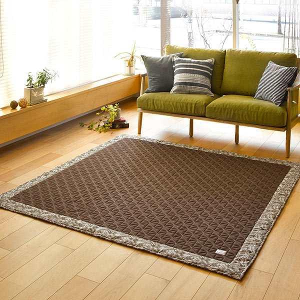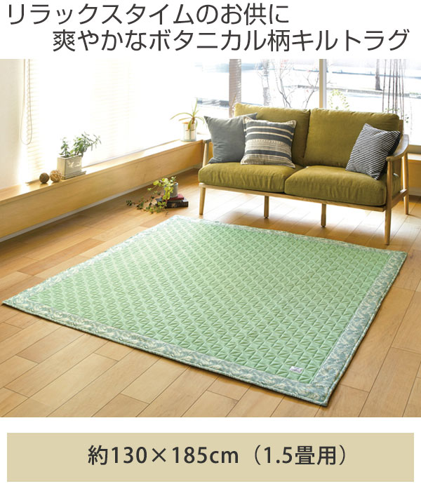 お部屋馴染みの良いボタニカル柄キルトラグ