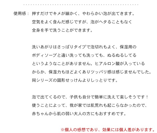 ●おうちの人のみんなのお顔やボディ洗浄料としてもお使いいただけます。