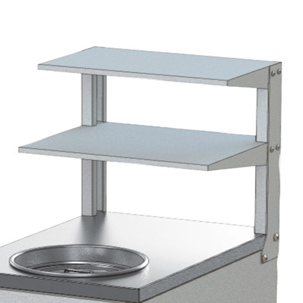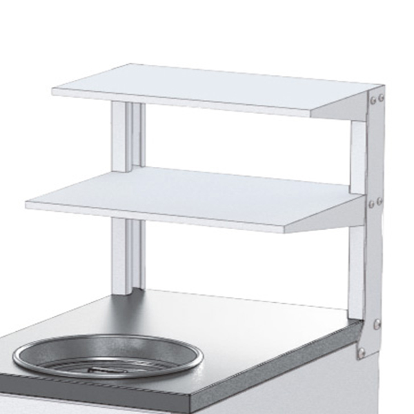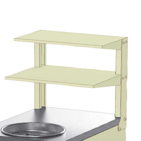廃液回収ボックスの上部に棚を追加出来ます。棚の上には洗浄後の試験機材等を収納出来ます。また本体との固定はビスで簡単に組み付けることが出来ます。