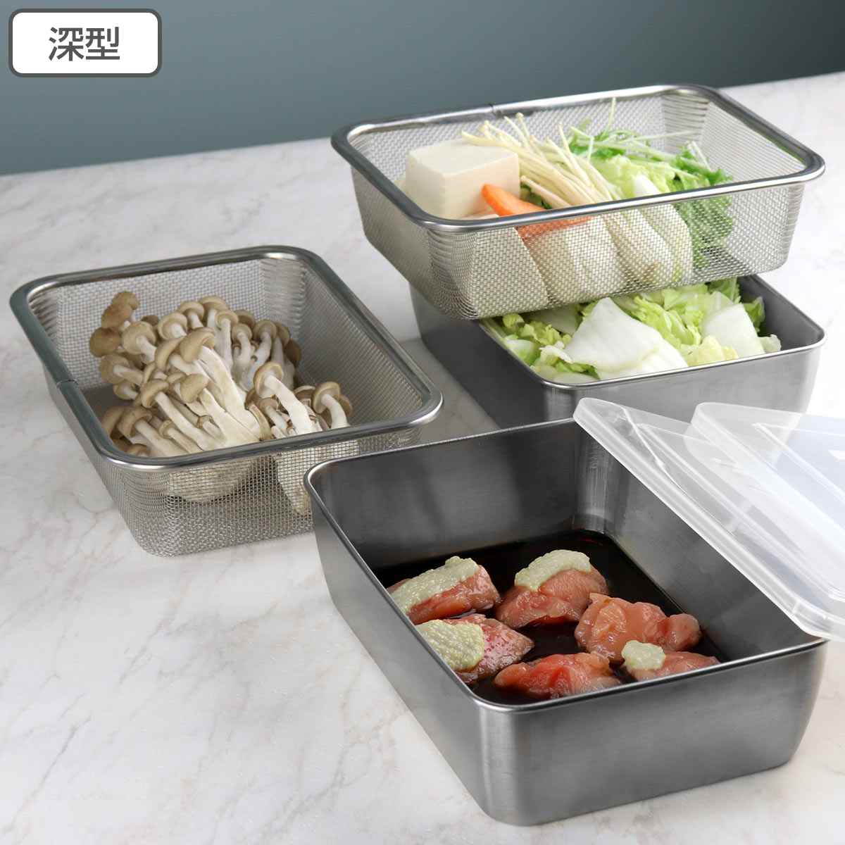 別売りの、浅型ザル・フタ付バットセット、深型ザル・フタ付バットセットと組合わせてお使い頂くとさらに便利です。