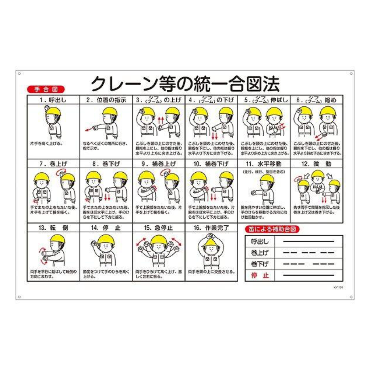 標識 クレーン・玉掛け関係標識 玉掛けワイヤーロープ標識 「クレーン等の統一合図法」 KY-103 ( クレーン ワイヤーロープ 安全 看板 表示 表示プレート )