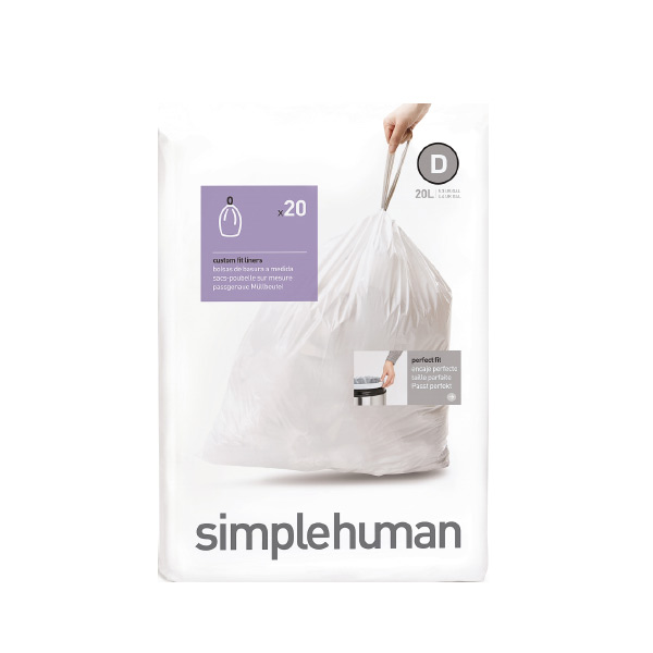 simplehuman ゴミ袋 20L カスタムフィットライナーD 4個セット CW0163 ( シンプルヒューマン 専用 ごみ袋 D 20リットル 専用ゴミ袋 パーフェクトフィット 白色 ホワイト )