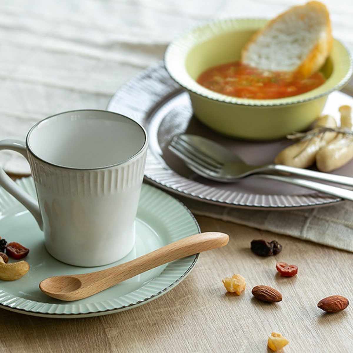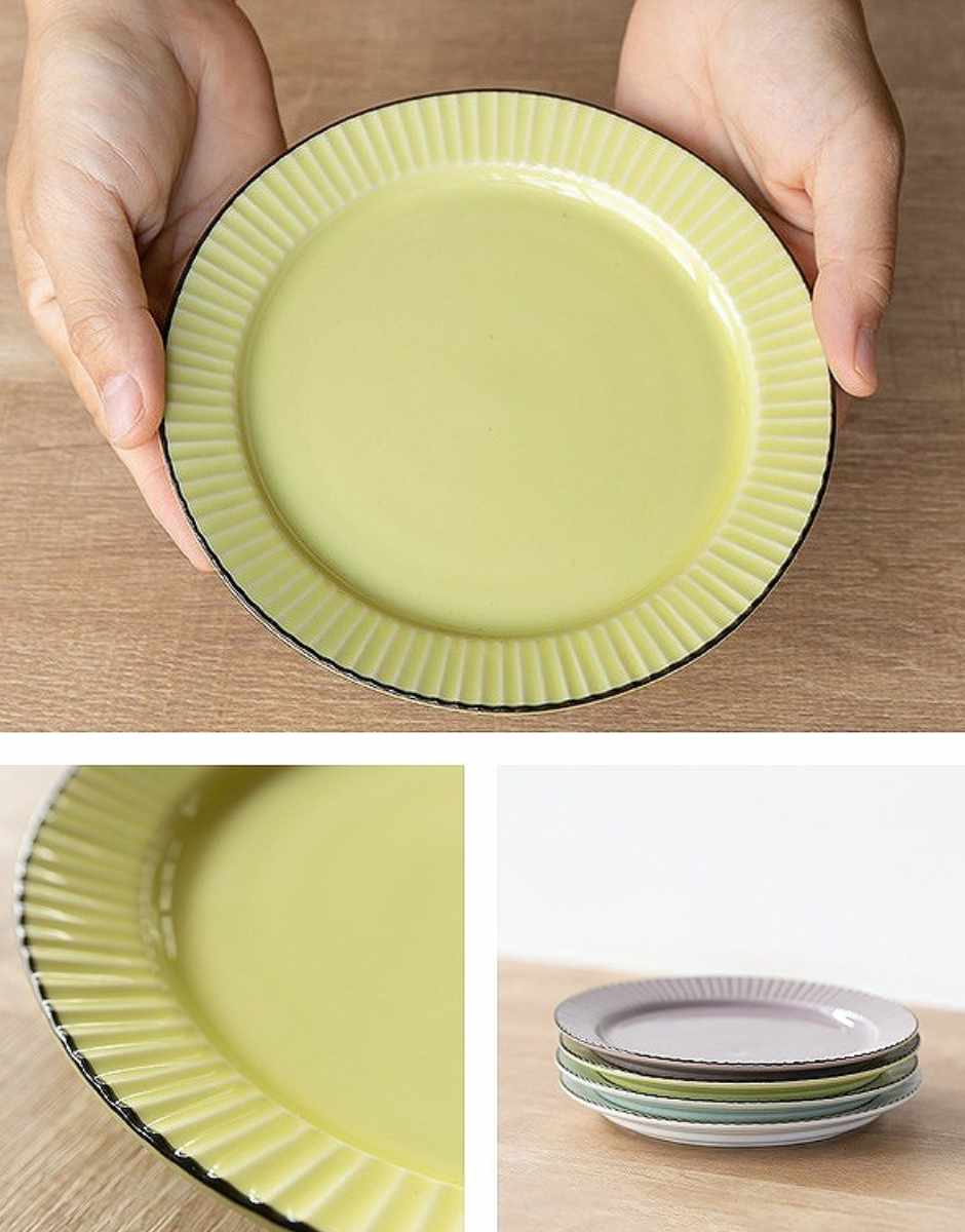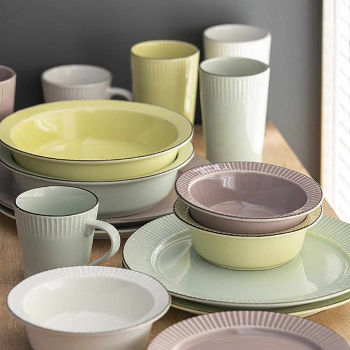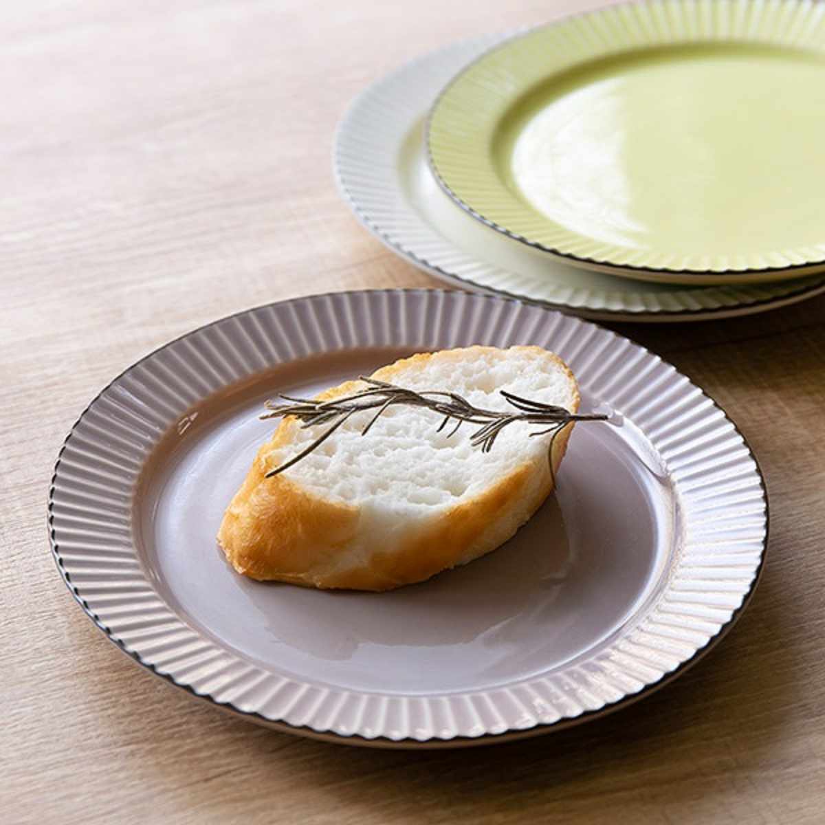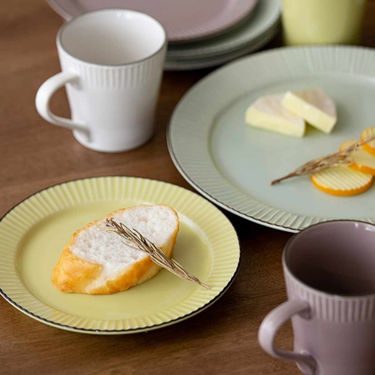 リム(食器の淵)に施された筋目の模様がより一層、食事を華やかにします。同じシリーズのマグカップやボウルと組み合わせてお使いいただくのもオススメです。