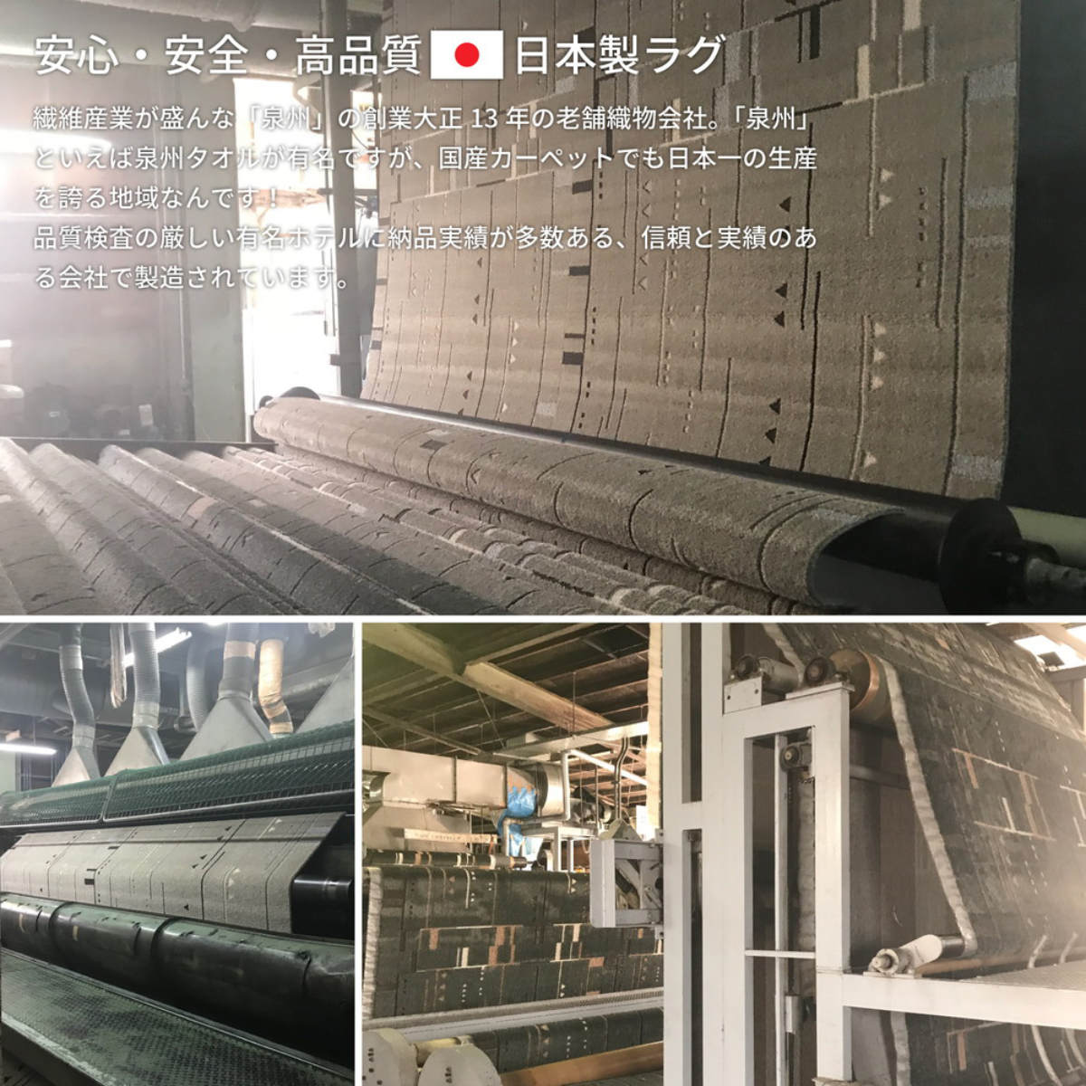 毎日触れるものだからこそ、気になる悩みがたくさん。こちらのラグは、防炎加工・防ダニ・抗菌・防臭基布を使用しており、小さなお子さまや、ペットのいるご家庭にもおすすめの1枚です。