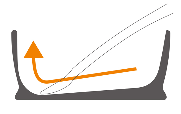 スプーンが沿う丸い角で高さがあるので、食べ物が手前に集まりやすく食べやすいです。