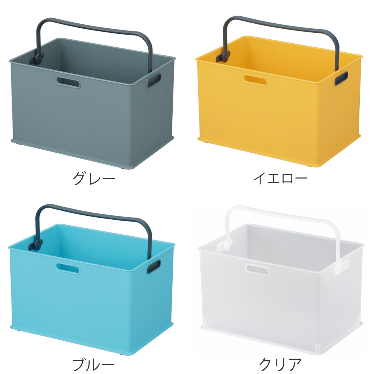 大きく握りやすいハンドル付きで、収納したままラクに持ち運べます。掃除道具や日用品の移動はもちろん、レジャーやキャンプにも便利です。使う場所へそのまま運べるので、「収納」と「持ち運び」をこれひとつで叶えます。