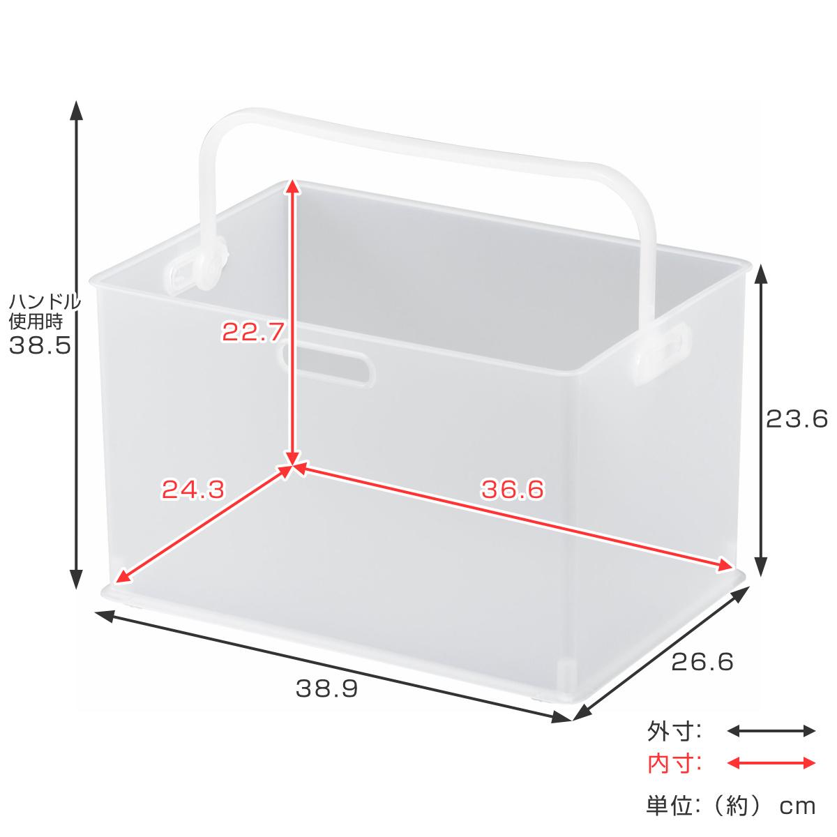 | サイズ | 外寸:約 幅38.9×奥行26.6×高さ23.6(cm) 内寸:約 幅36.6×奥行24.3×高さ22.7(cm) ハンドル使用時:高さ33.5(cm) |