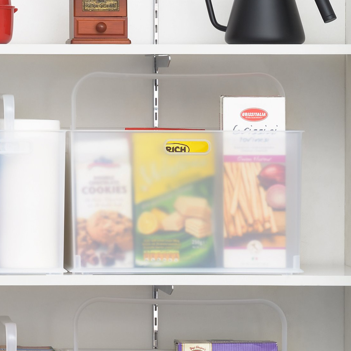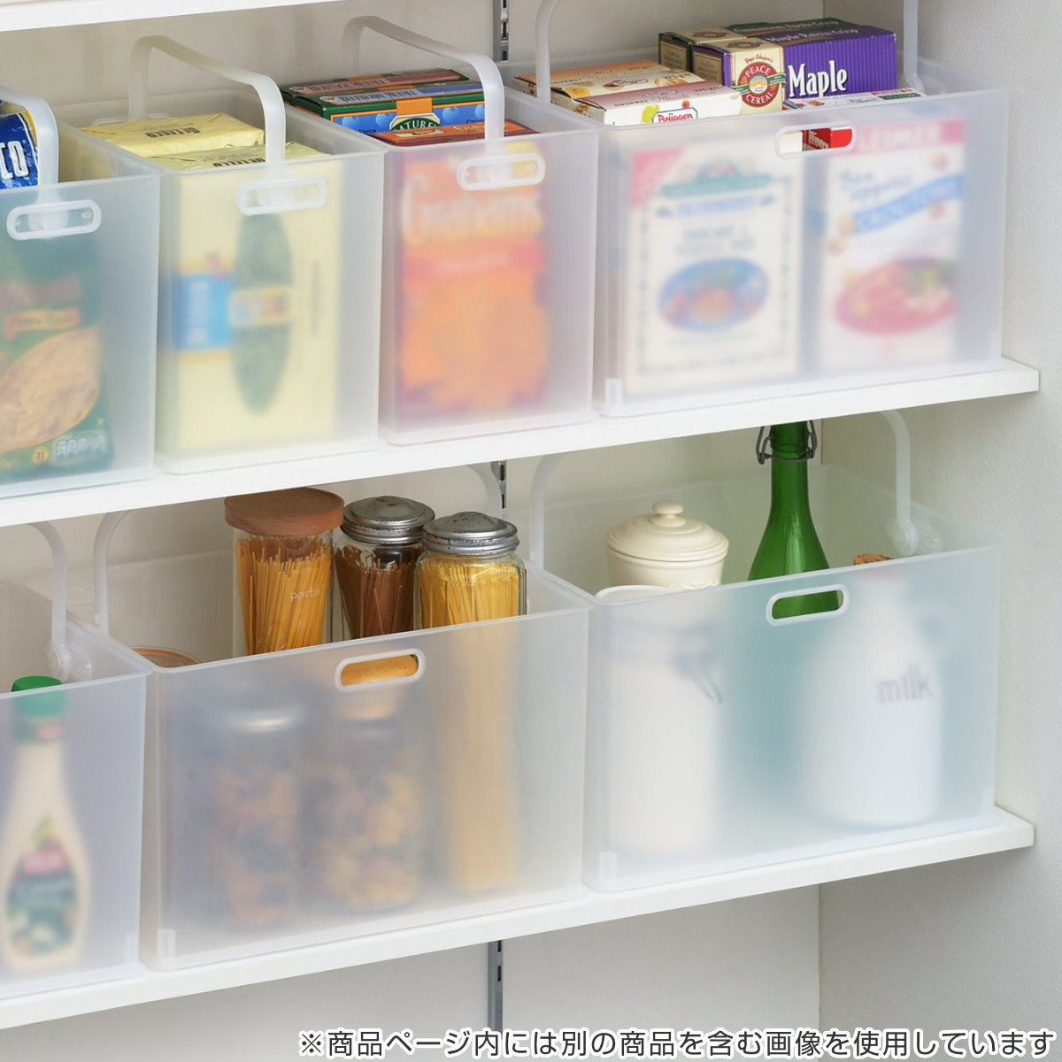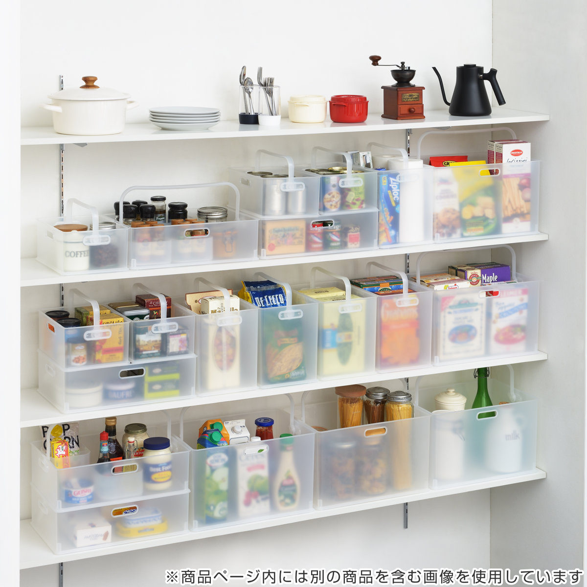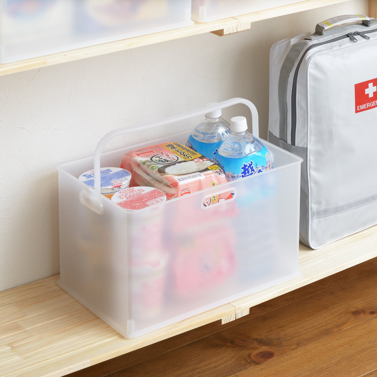 重ねて、並べて、スッキリ整う収納設計の収納ボックスです。並べて整理することで無駄のないレイアウトが生まれ、ハンドル付きだから収納したまま移動も可能です。使う場所へそのまま運べることで、家事の動線がスムーズになります。