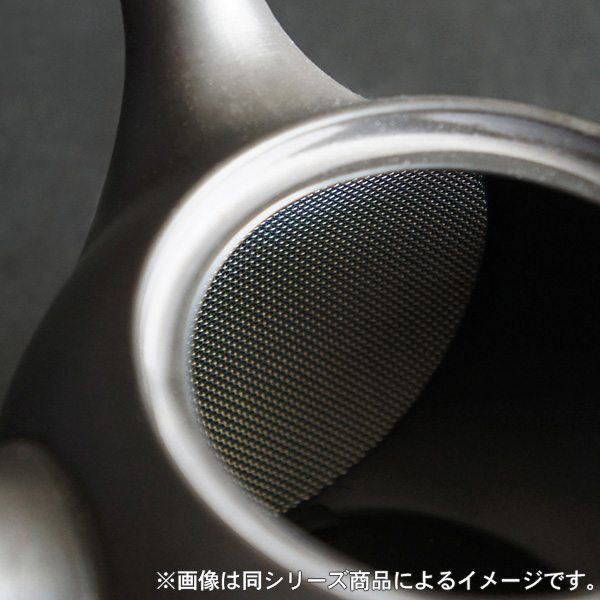 急須の丸い形状に沿った取り付けのステンレス製茶こしです。中が広く茶葉がゆったりと広がり抽出力が高まります。またすり合わせのフタでしっかり蒸らせ美味しいお茶が淹れられます。