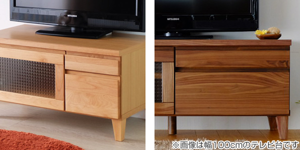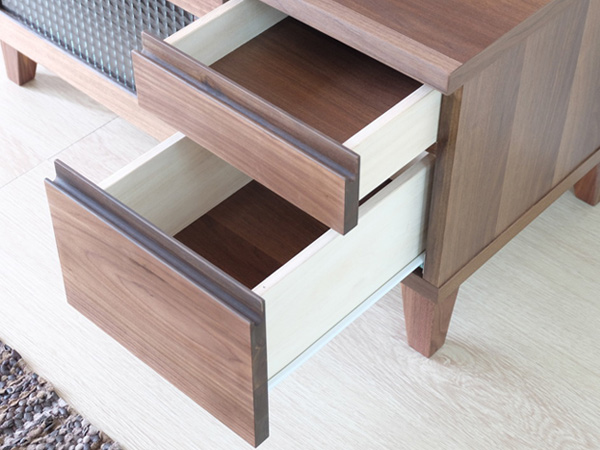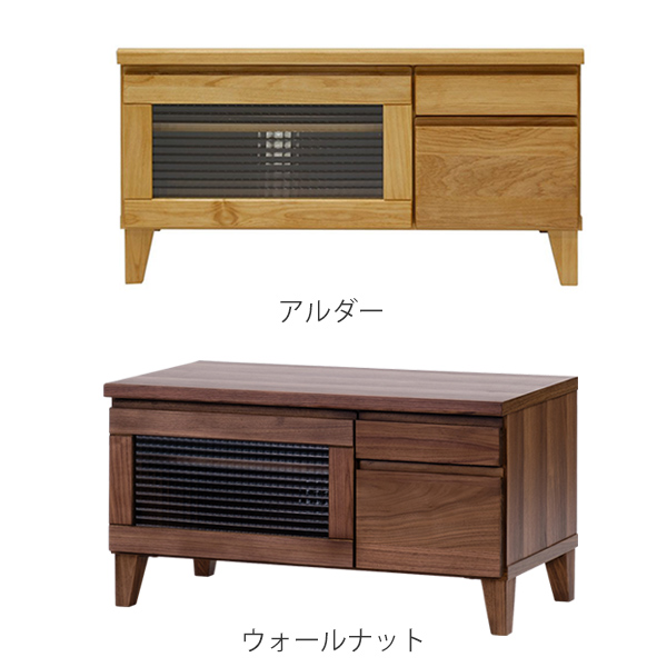 | 材質 | [アルダー] 天板:プリント紙+面木 前板・脚部:アルダー無垢材(オイル仕上げ) 側板:プリント紙化粧繊維板 引出し:桐材 ガラス:クロスガラス [ウォールナット] 天板:プリント紙+面木 前板・脚部:ウォールナット突板(オイル仕上げ) 側板:プリント紙化粧繊維板 引出し:桐材 ガラス:クロスガラス |