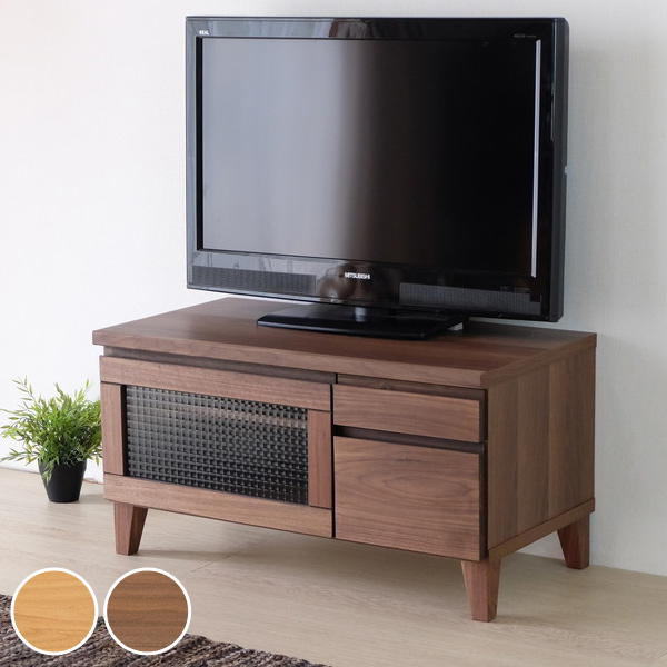 一人暮らしやワンルームのお部屋にピッタリなコンパクトサイズのテレビ台です。レトロモダンなクロスガラスがかわいらしい印象ですが、前板・脚部に天然木を使用することで上品さもプラスされたデザインです。