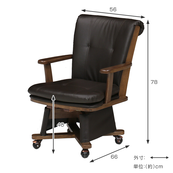 ゆったり寛げるキャスター付きこたつチェア