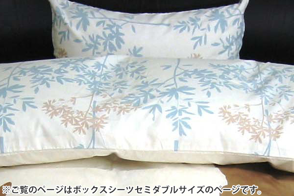 ボックスシーツには、掛け布団カバーの裏地と同じ爽やかな草木の総柄をプリントしています。