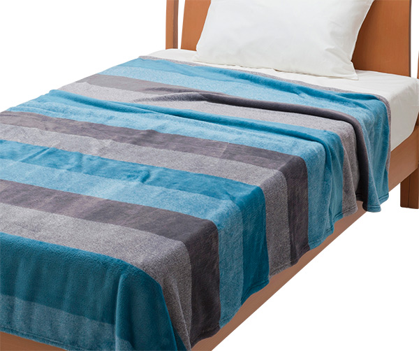 落ち着いた色味のボーダー柄毛布は、様々な寝室に合わせやすいデザインで使い勝手のよいサイズです。