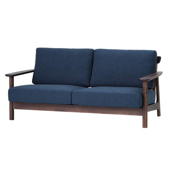 背クッション、座クッションのどちらのカバーも取り外せるので水洗いできます。カバーの色は、落ち着きのある色目のダークブルーで、ウォールナットとの相性が良いです。