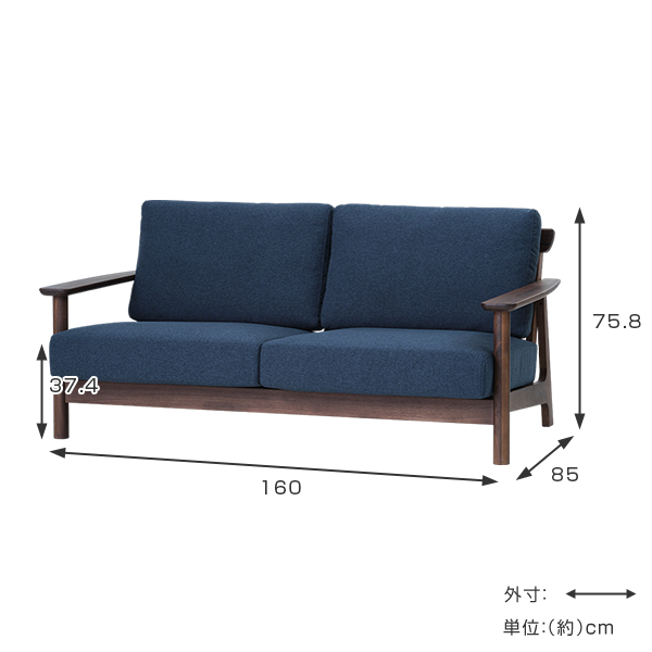 - 約幅160×奥行85×高さ75.8(座面高37.4)cm