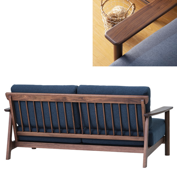 フレーム、肘掛け、脚部は、ウォールナット材を使用しております。背面はスタイリッシュな縦格子仕様になっております。