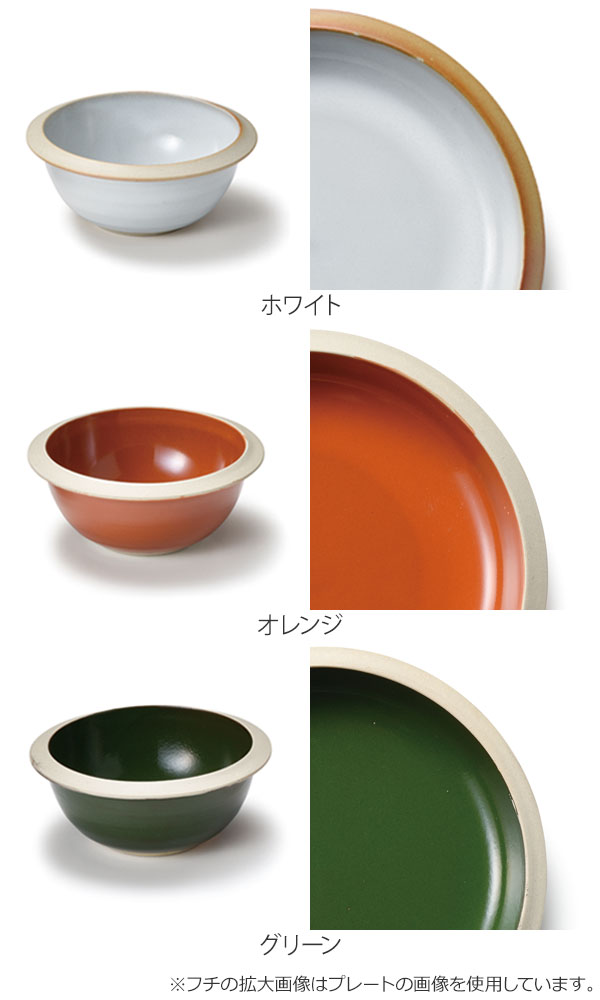 土の素朴な風合いが魅力。厚みのあるデザインでずっしりとした佇まいです。全体はつるりとした質感で、リム(フチ)の部分は素地本来の肌触りを感じていただけます。一点一点色や風合いなどが違い、使えば使うほど愛着が増していきます。食洗機・電子レンジ対応なので調理やお手入れも簡単です。
