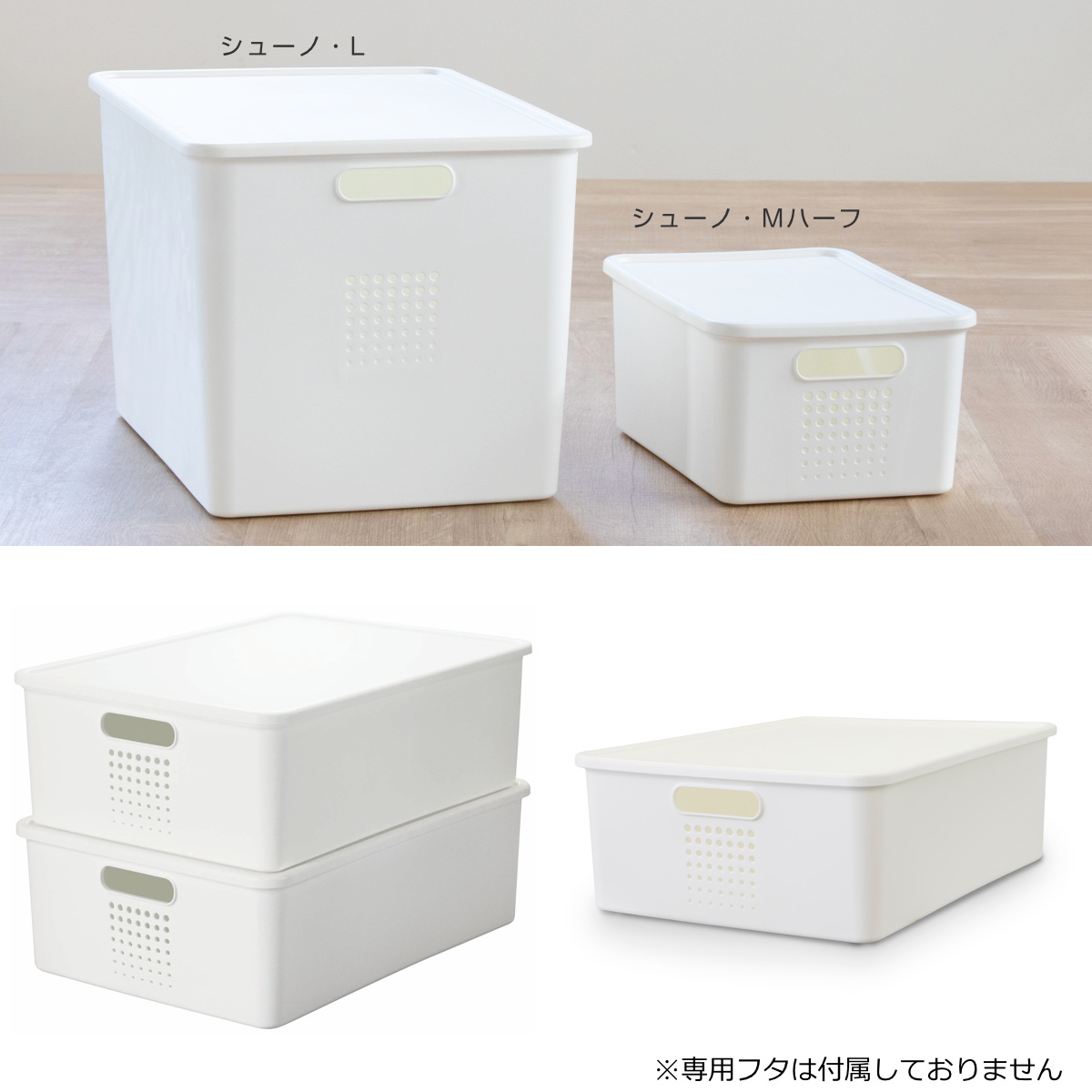 別売りの「Lサイズ専用フタ」と組み合わせれば、積み重ね収納が可能。限られたスペースを有効活用でき、キッチンやパントリーをすっきり整えられます。