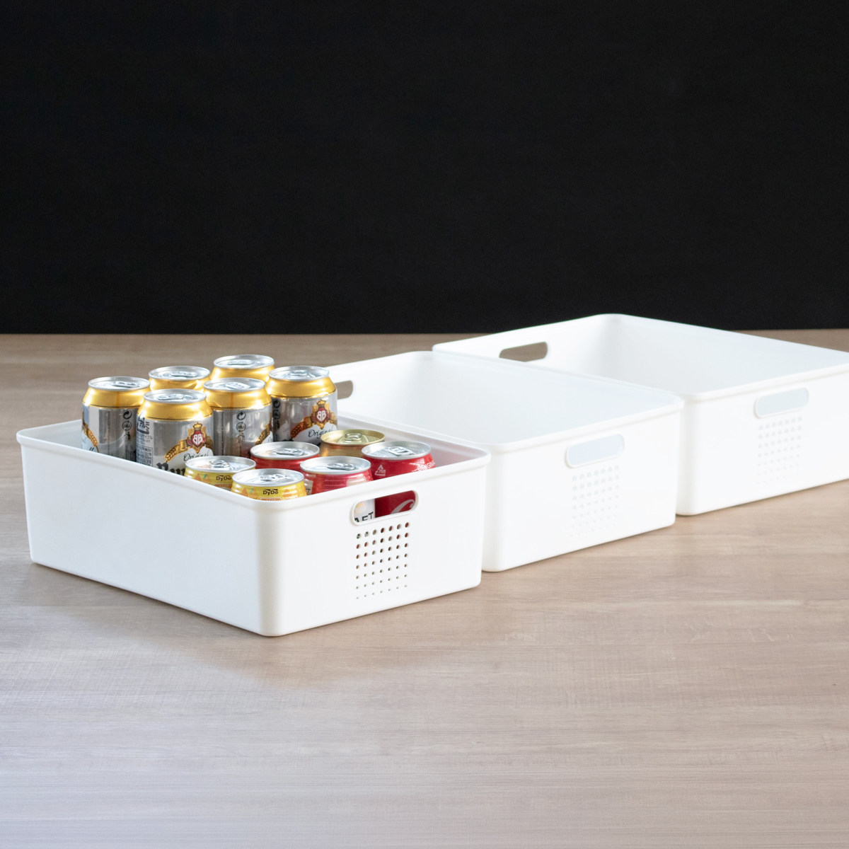 中に入れた物がひと目で分かる浅型タイプ。保存容器やお弁当グッズなど、幅広い収納に便利です。