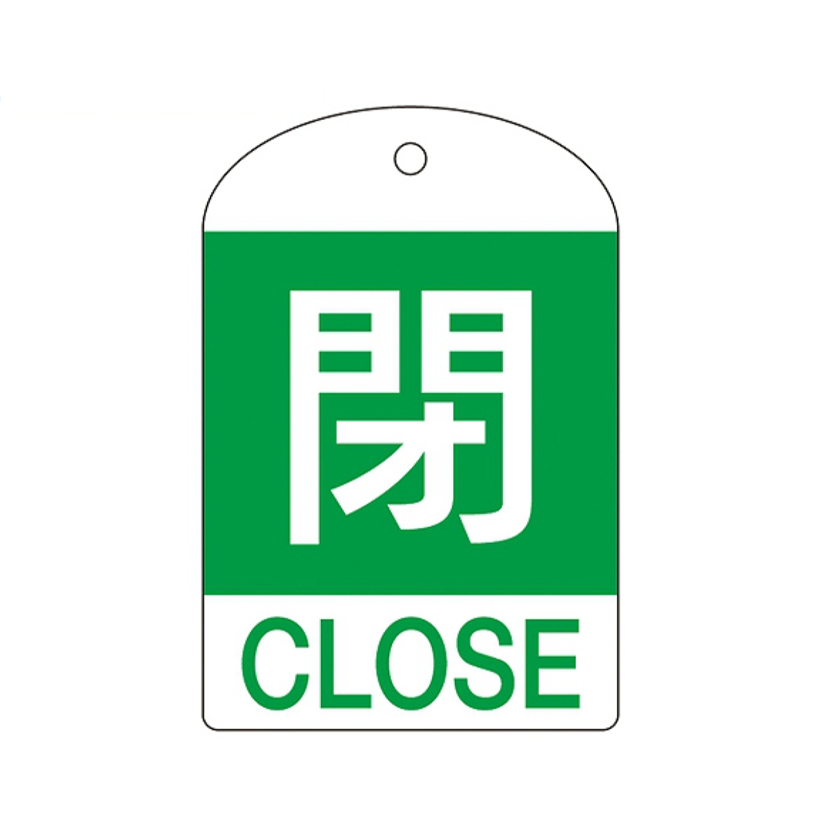 バルブ開閉札 英文字入り 緑 「 閉 」 10枚入 特15-302B 日本製 ( 両面印刷 ラミネート加工 バルブ 開閉 札 安全 フダ ふだ 表示 表示板 英語表記 英字 英語 表記 事業所 工場 現場 作業 用品 グッズ 安全用品 )