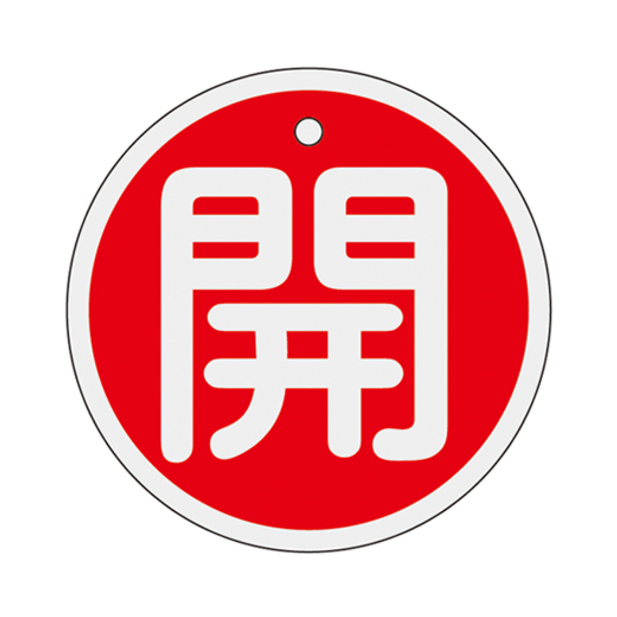 バルブ開閉札 アルミバルブ開閉札 赤 直径5cm 「 開 」 特15-84A アルミ 日本製 ( アルミ製 両面印刷 バルブ 開閉 札 安全 フダ ふだ 表示 表示板 事業所 工場 現場 作業 用品 グッズ 安全用品 )