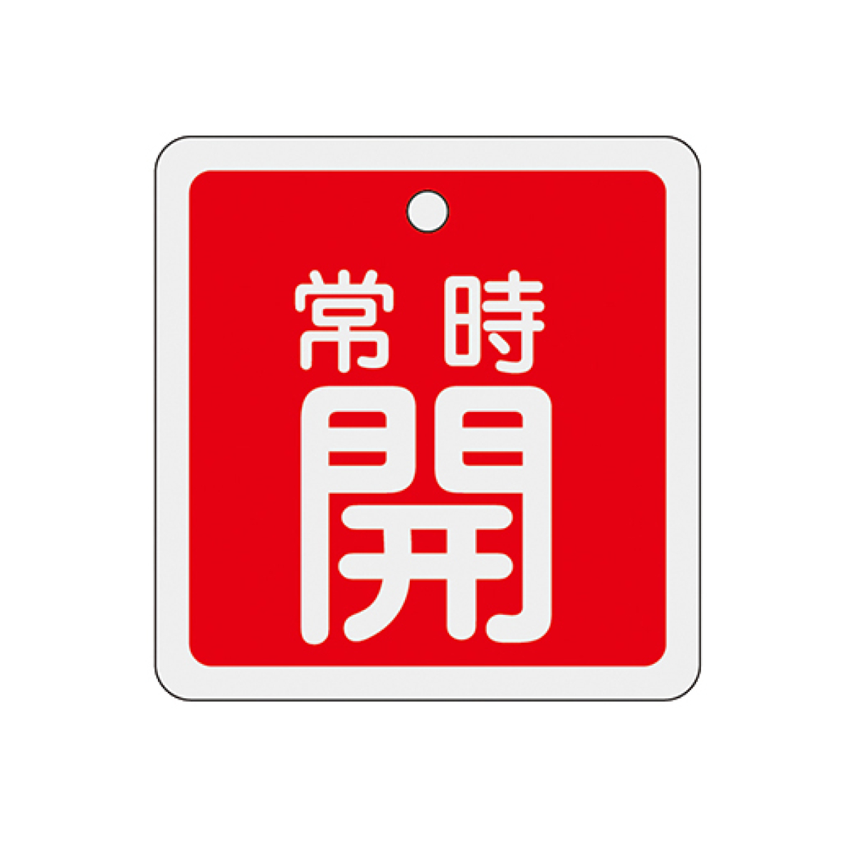 アルミバルブ開閉札 赤 5cm 「 常時 開 」 特15-82A アルミ 日本製 ( アルミ製 両面印刷 バルブ 開閉 札 安全 フダ ふだ 表示 表示板 事業所 工場 現場 作業 用品 グッズ 安全用品 )