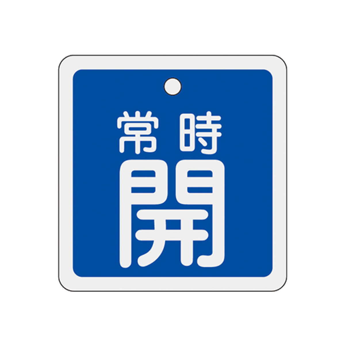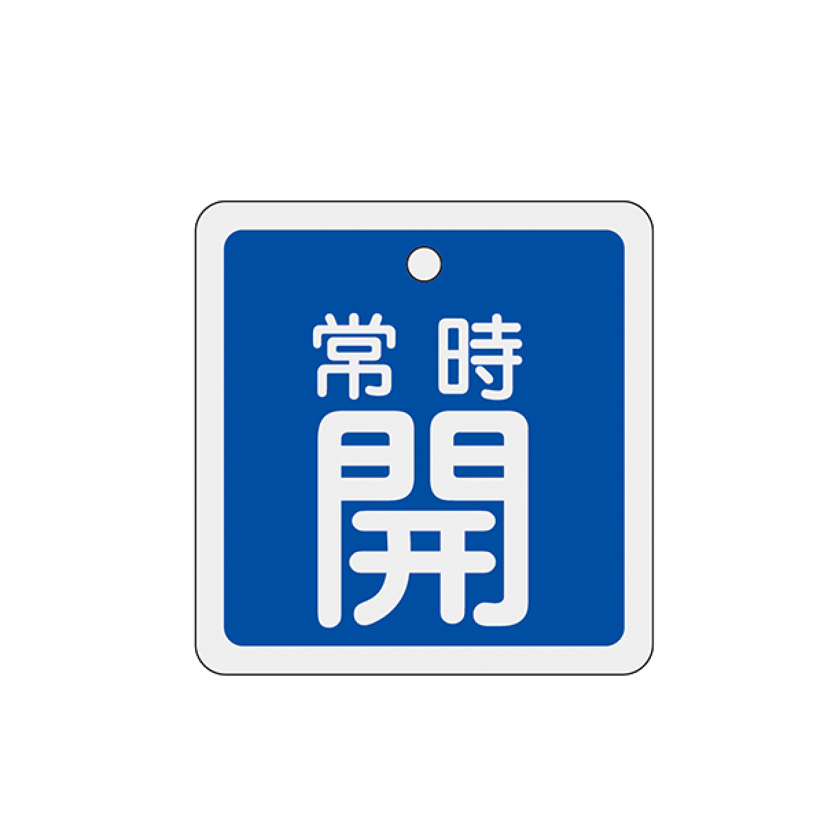 アルミバルブ開閉札 青 5cm 「 常時 開 」 特15-82C アルミ 日本製 ( アルミ製 両面印刷 バルブ 開閉 札 安全 フダ ふだ 表示 表示板 事業所 工場 現場 作業 用品 グッズ 安全用品 )