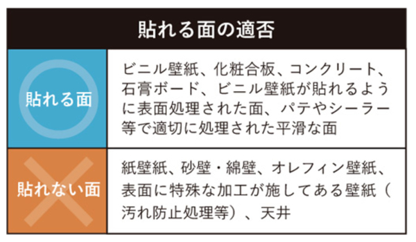 今の壁紙の上から貼れるので簡単に施工できます。のり残りしにくくきれいにはがせるため、賃貸住宅でも気軽にお部屋のイメージチェンジを楽しめます。
