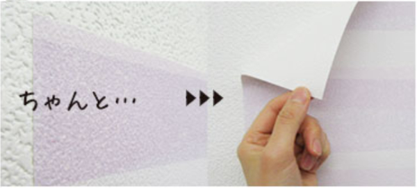 飽きたり汚れたりしたら、裾からめくるだけできれいに現状復帰します。独自開発の粘着加工により、貼った跡が付いたり、もとの壁紙を傷めたりせず、剥がし剤や拭き取り作業も必要ありません。