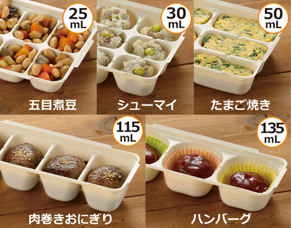 25ml~135mlは夜ご飯の残り物からお弁当のおかずまでいろんな食材におすすめです。