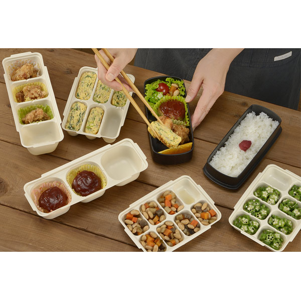 1個分、1食分を適量を小分けにできる容器なので忙しい朝のお弁当作りもサポートします。週末や夜に作り置きして朝はお弁当に詰めるだけでOK!小分けにできるから食材同士がくっつかず1つのトレーで何種類ものおかずを1度に保存できます。