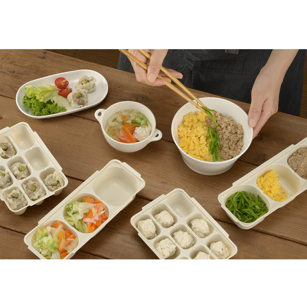 事前に準備した食材や調理した食事などを小分けにし、冷蔵・冷凍保存することで調理の時短ができ、忙しい主婦の時短調理をさりげなくサポートします。