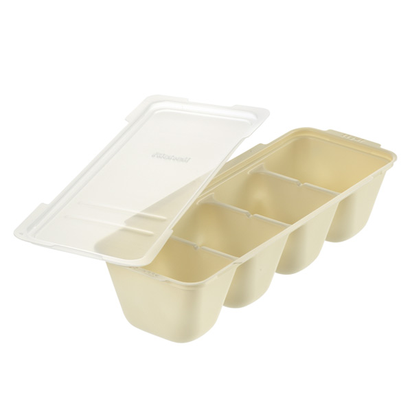 味玉や肉巻きおにぎり、蒸しパンにぴったりの115ml×4ブロック。フタ付きなのでラップを使わず保存できるからエコで経済的です。食洗機にも対応し、繰り返し使える便利なアイテムです。