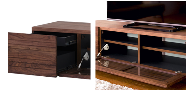 | 材質 | 天板・側板:ウォールナット突板材繊維板 前板:ウォールナット無垢材 引出し・背面・棚板:プリント紙化粧繊維板 |