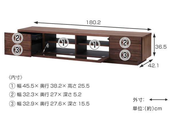 - 約幅180.2×奥行42.1×高さ36.5cm
