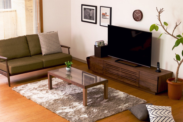 ウォールナット材の高級感とシックな色味がお部屋を素敵に演出
