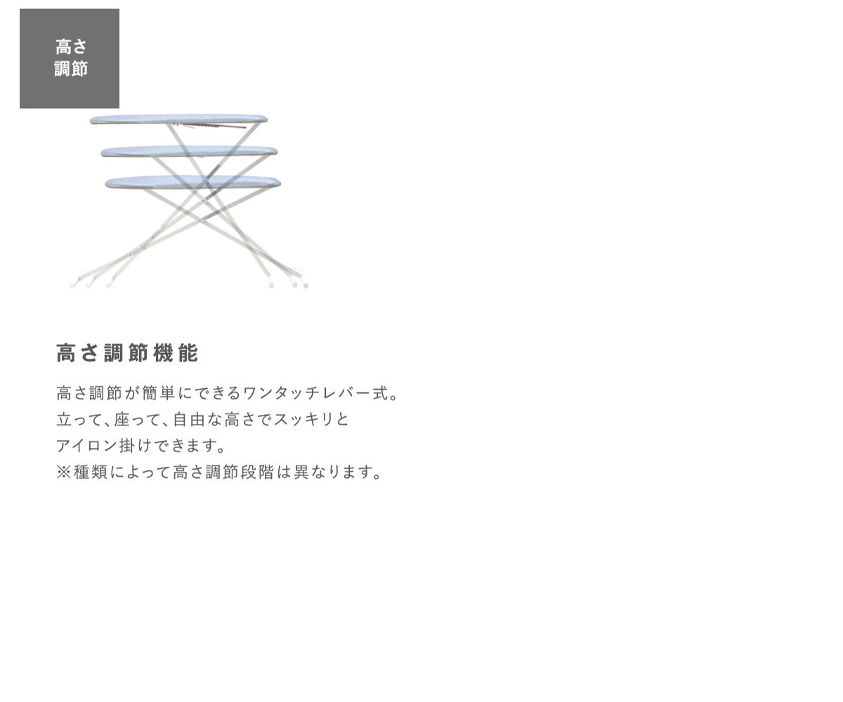 高さは23cmと28cmの2段階で調整できます。また脚を全部スライドさせればパタンと折り畳めます。ご自身に合う高さでアイロン掛けが出来ます。